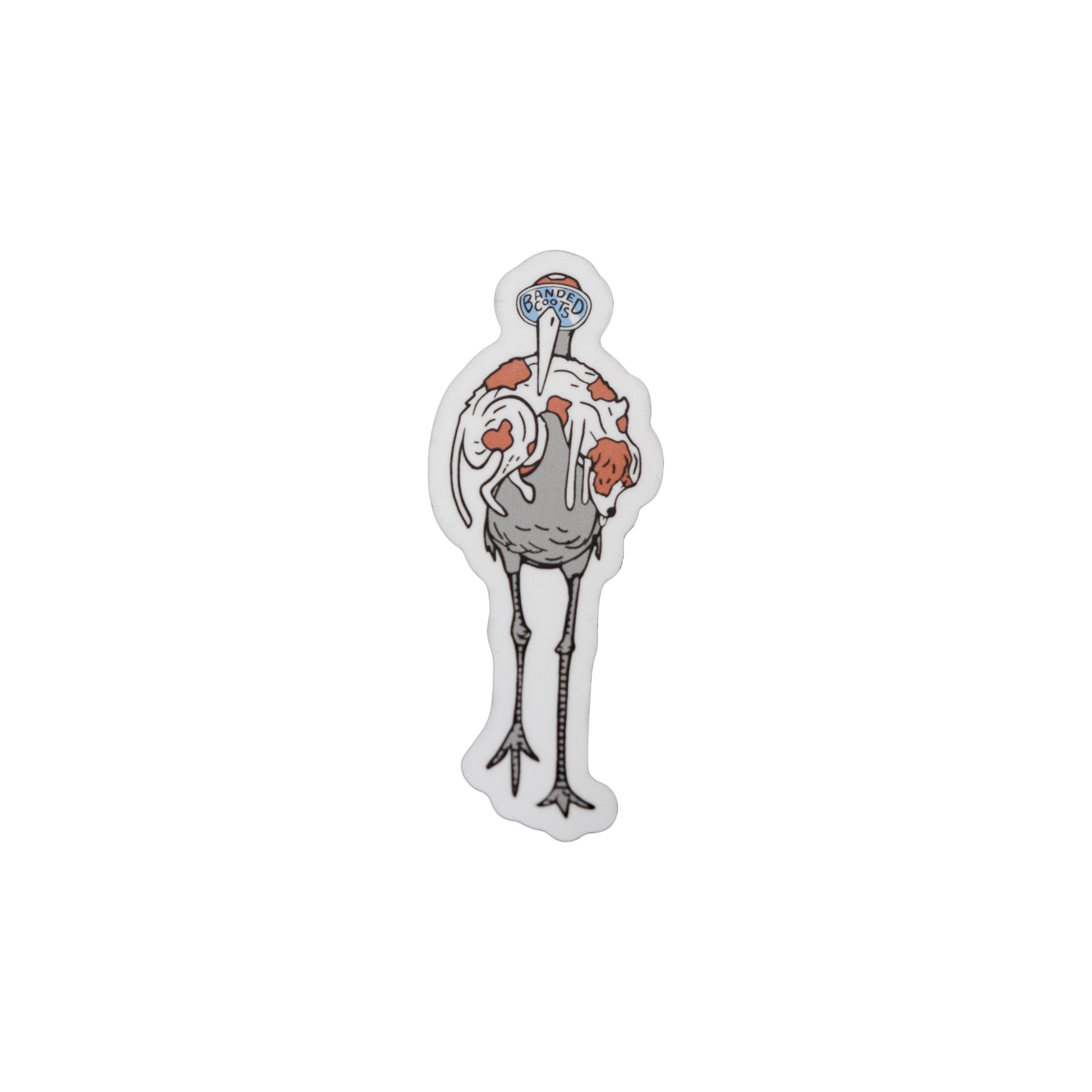 The sticker features a colorful graphic of a crane holding a small dog in its beak. The dog should be the one with the crane in it's mouth, making for a humorous and unexpected design. The colors are bright and vibrant, making the sticker easy to spot and catch the attention of others.